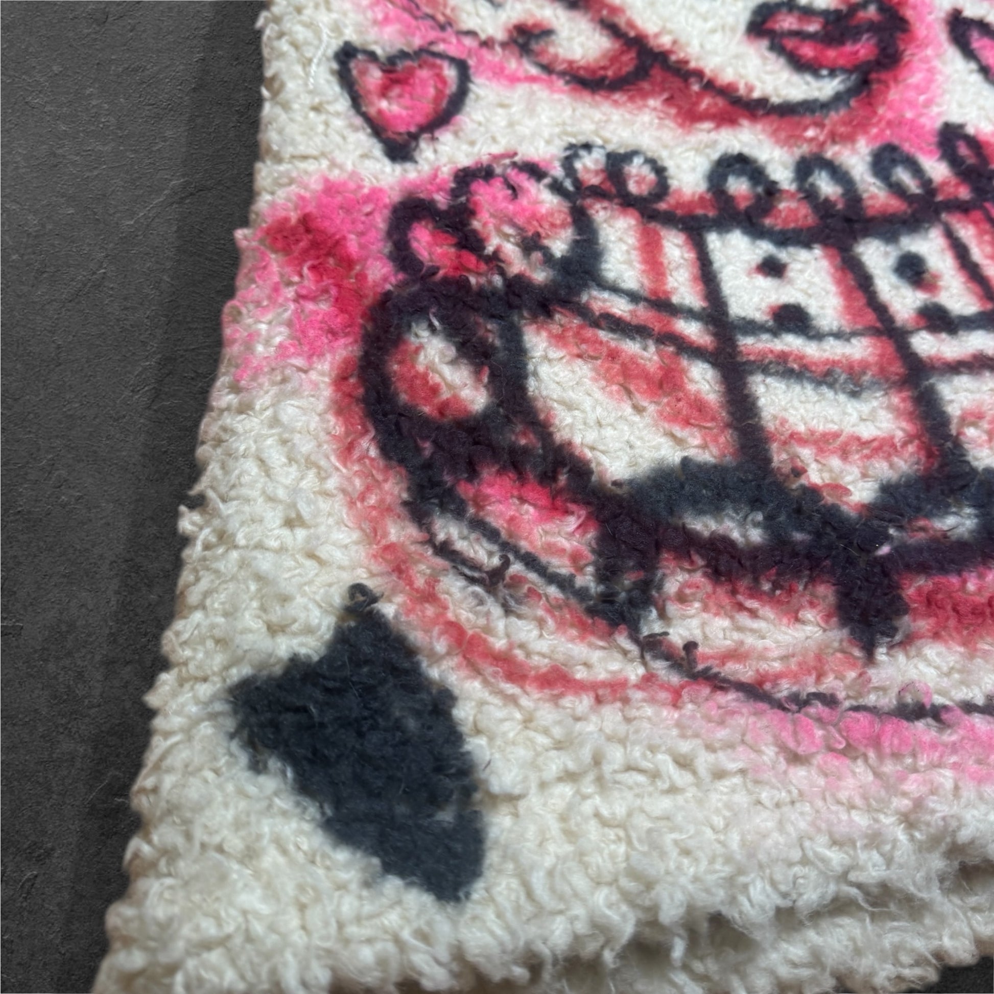 The soft bouclé sherpa material gives the artwork a raw, elevated texture, making the colors bleed and blend in a way that looks straight off a gallery wall.