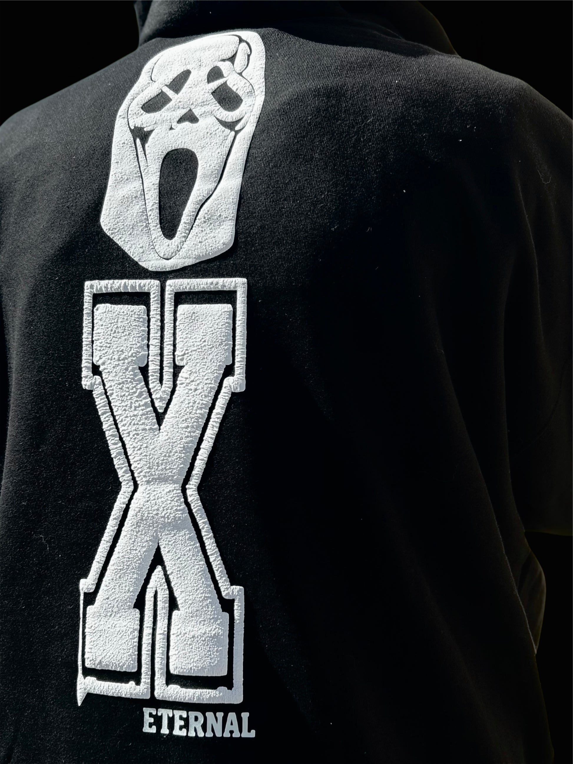 back hit comes with a X and designated to be a number. Eternal on back and sleeve